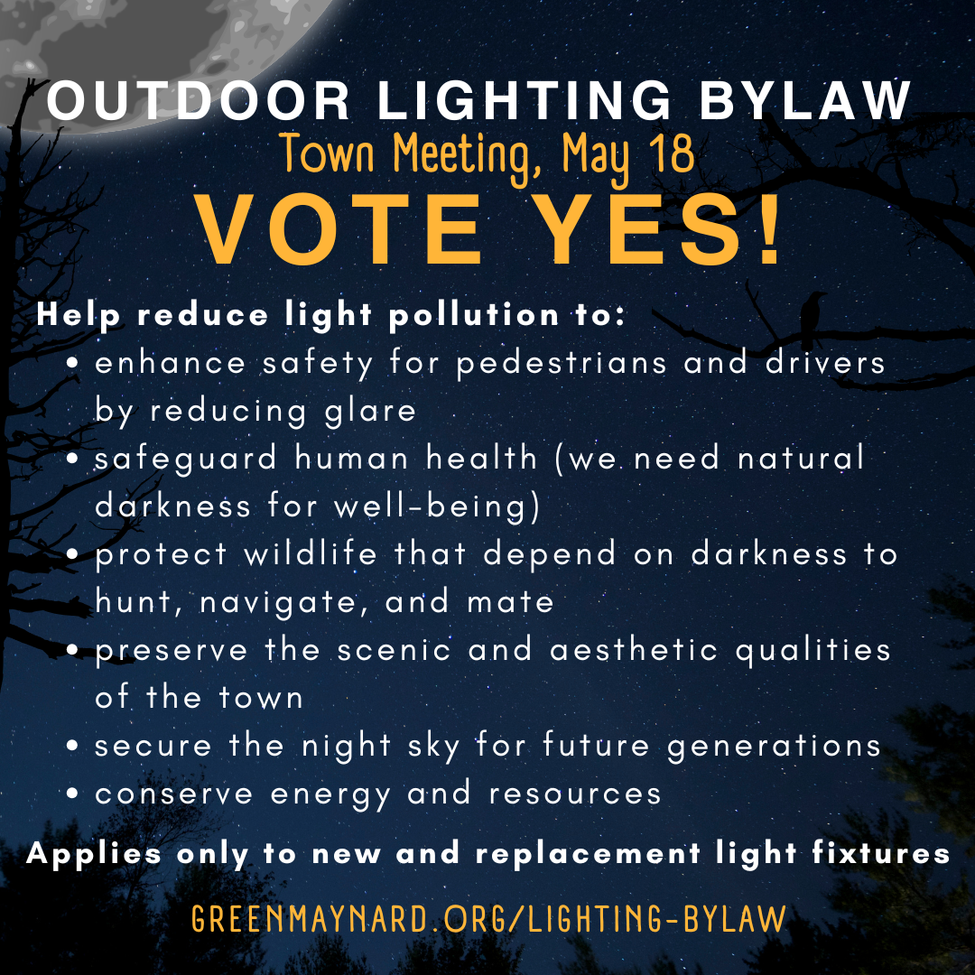 As towns become increasingly dense and lighting options more affordable, there is a notable increase in the amount of light pollution across the state and around the world. Not only is light pollution—which includes excessive lighting and blue-hued LED lighting—bad for wildlife and for human health, it also contributes to the climate crisis. With the help of DarkSky International and DarkSky Massachusetts, Green Maynard aims to educate residents and businesses about the harms of light pollution.
